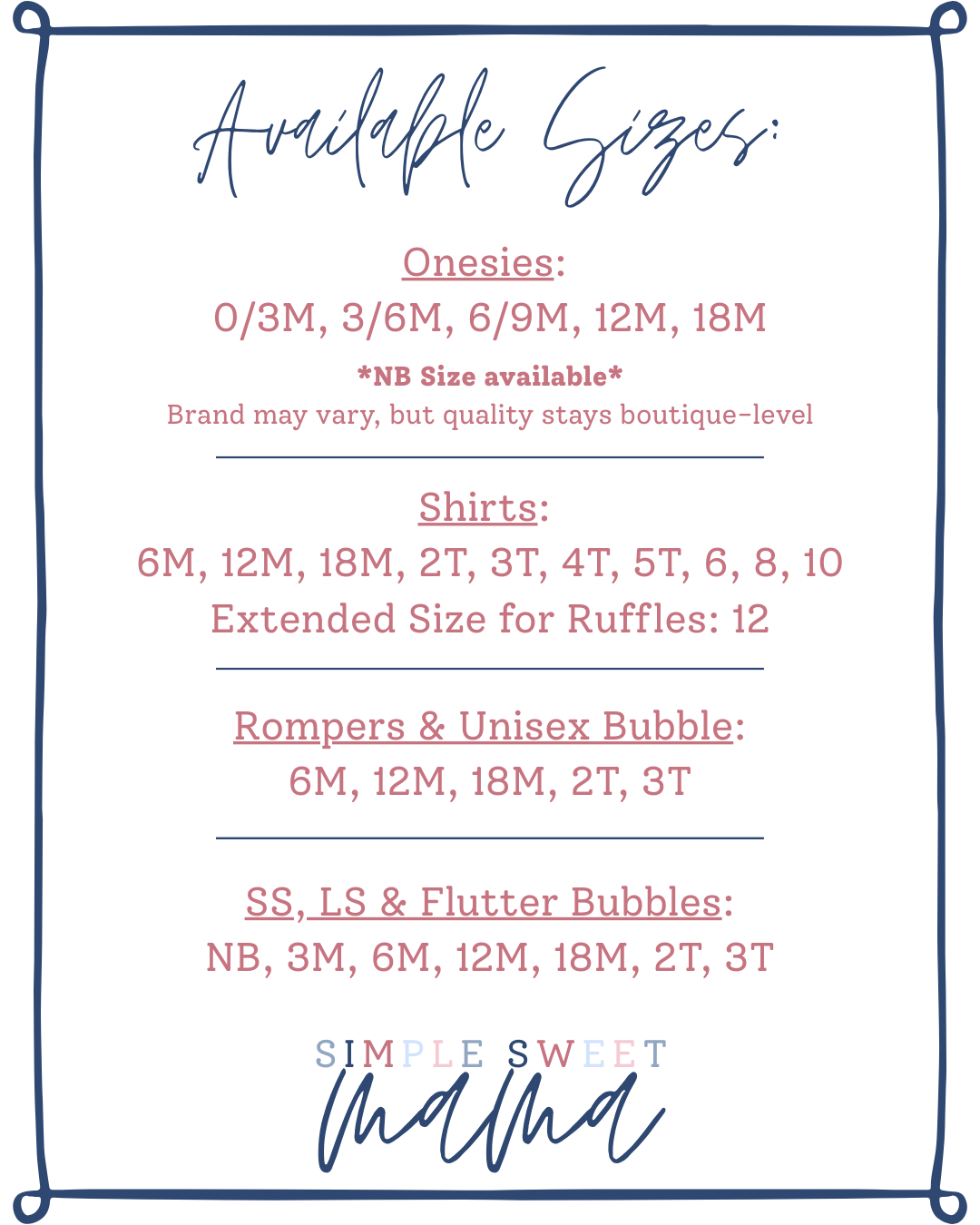 By placing an order you are agreeing to the Policies set in place by SimpleSweetMama
